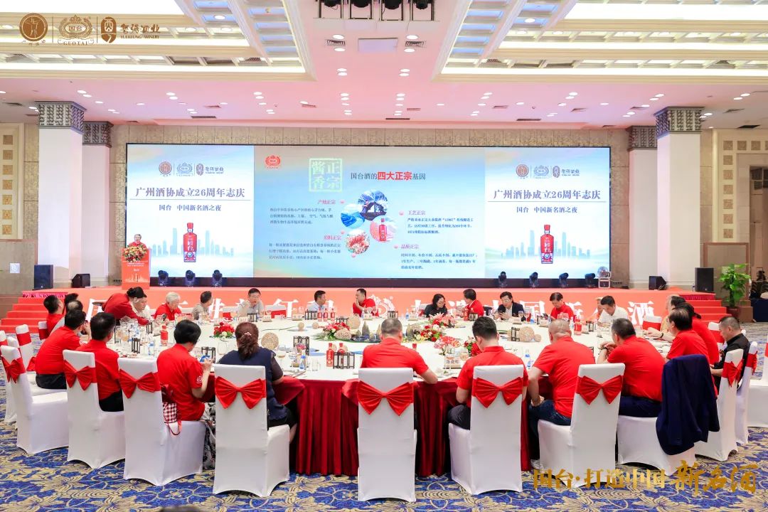 会员大会结束后,大家欢聚一堂,共度美好时光,共同参与广州酒协成立26周年志庆暨国台·中国新名酒之夜,在晚宴中进行友好互动交流,在热烈的气氛中,本次大会圆满结束。
