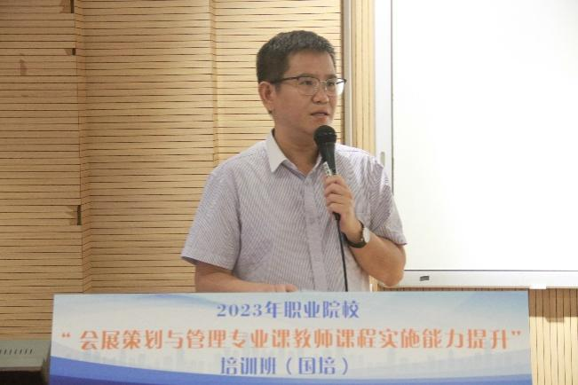 7月14日,2023年职业院校会展策划与管理专业课教师课程实施能力提升培训(国培)在我校顺利举办。继续教育学院院长陈少烽,运输与经济管理学院副院长赵红英教授、国培项目负责人曾艳英教授、会展策划与管理专业带头人文晓立博士出席并分别致辞,综合办公室主任吴双芳以及来自广东省各高职院校的46位教师参加培训。