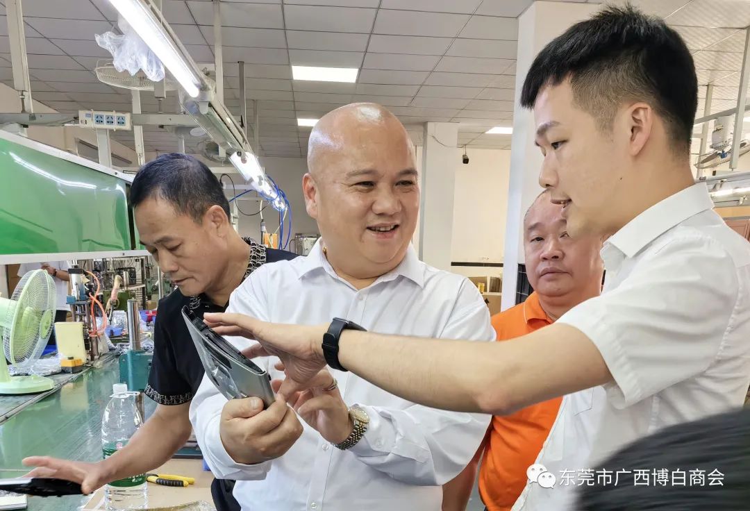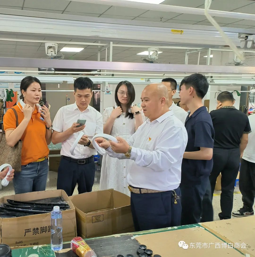 商会成员还陪同考察团一起走访了我会执行会长张兴虎企业:东莞市龙旺福塑胶制品有限公司,和理事刘朝银企业:东莞市浩航碳纤维制品有限公司