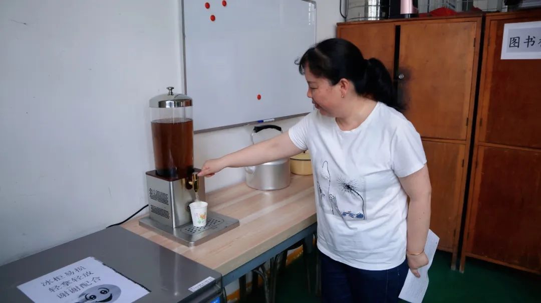 走进金工车间改造建成的职工休息室,环境焕然一新,让人心旷神怡。只见窗明几净、桌椅整齐,桌上摆放着冷饮机,酸梅汤、白糖等降温品陈列在旁;冰柜里的雪糕琳琅满目,种类多样。冰柜投入使用后,车间及时采买降温食品,保证冰柜不空,雪糕充足;自制酸梅汤,犹如为职工定制了“冰镇加油站”,保证生产现场饮用供应,让凉爽常伴身边,让燥热降到“冰点”,使职工能够精力充沛地投入到生产工作中。