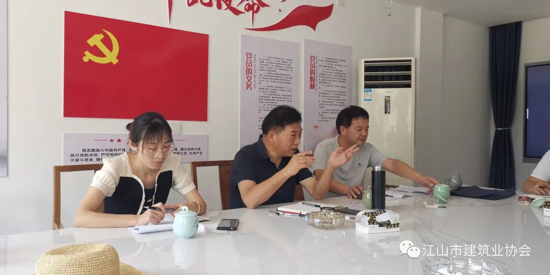 参加活动的五家企业负责人就企业资质升级、省施工企业信用分、项目创优夺杯、工程资料编写、园林工程评标评杯、江山市标后履约信用分等方面纷纷发言,提出合理化建议。走访活动取得良好成效。
