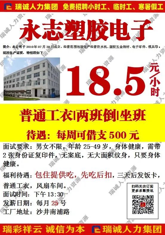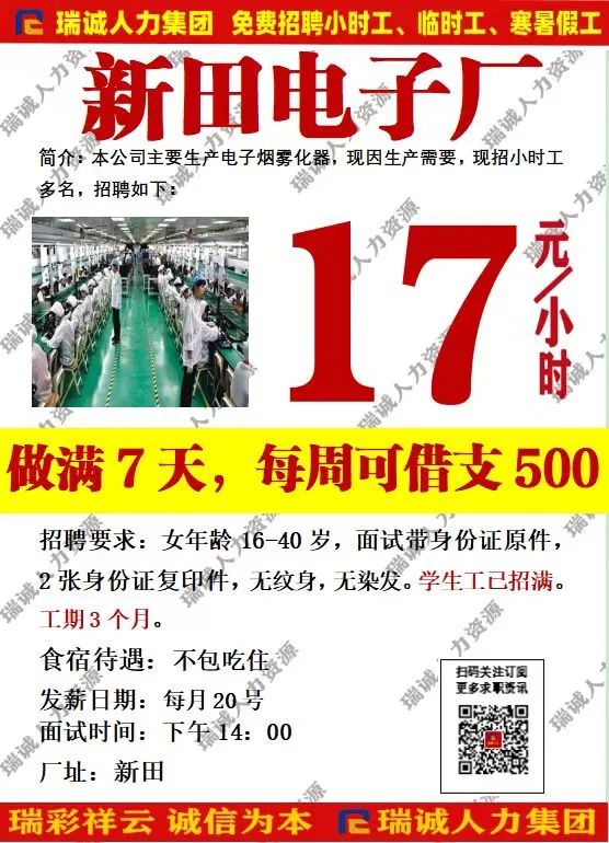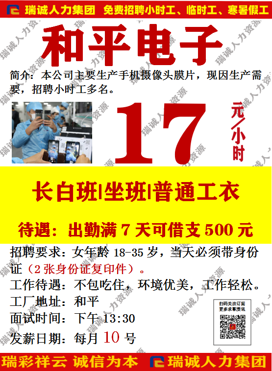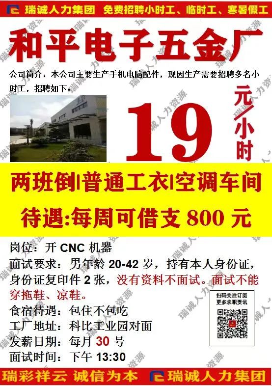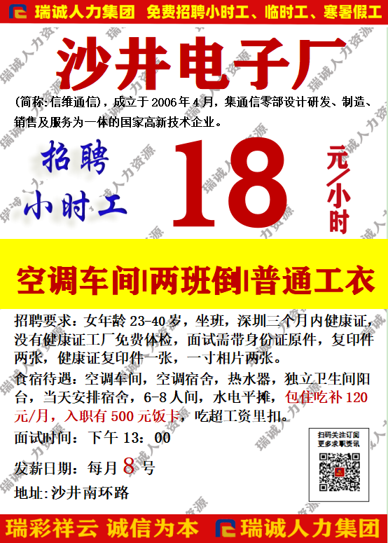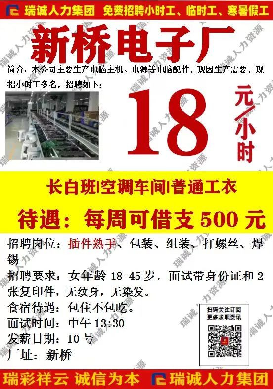 深圳市瑞诚劳务派遣有限公司成立于2005年10月,是一家致力于资源开发、供应管理、人才交流的专业机构,公司团队有16年的人力资源服务经验。公司服务范围主要集中于深圳,东莞及周边地区,涉及电子、玩具、塑胶、五金等工厂,公司始终坚持“以人为本,以信誉为发展”的服务宗旨。