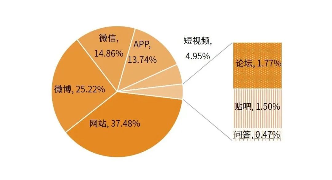 从分布渠道来看,舆情声量主要集中在网站、微博、微信平台,总占比超过75%。从媒体平台来看,新浪微博、搜狐网、今日头条平台的讨论度相对较高。虽然阿斯巴甜被国际癌症研究机构列为2B类致癌物,但致癌物的评级并不等同于其风险程度,多方研究机构都认为每公斤体重0-40毫克这一每日允许摄入量没有问题,极大可能并不会对普通人的饮食习惯产生太大的影响。