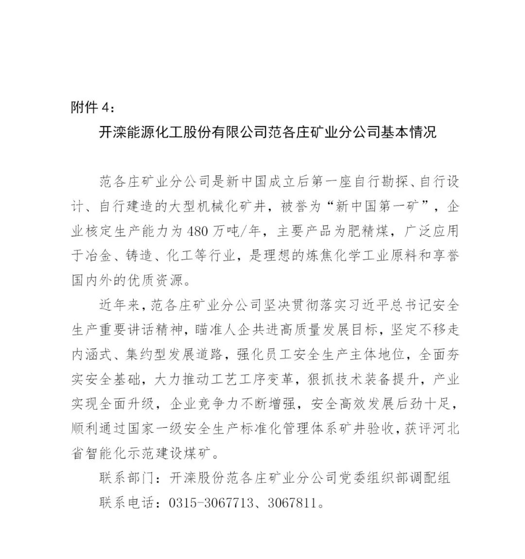 范各庄矿业分公司、吕家坨矿业分公司隶属开滦能源化工股份有限公司,地点在唐山市古冶区(各公司基本情况附后)。
