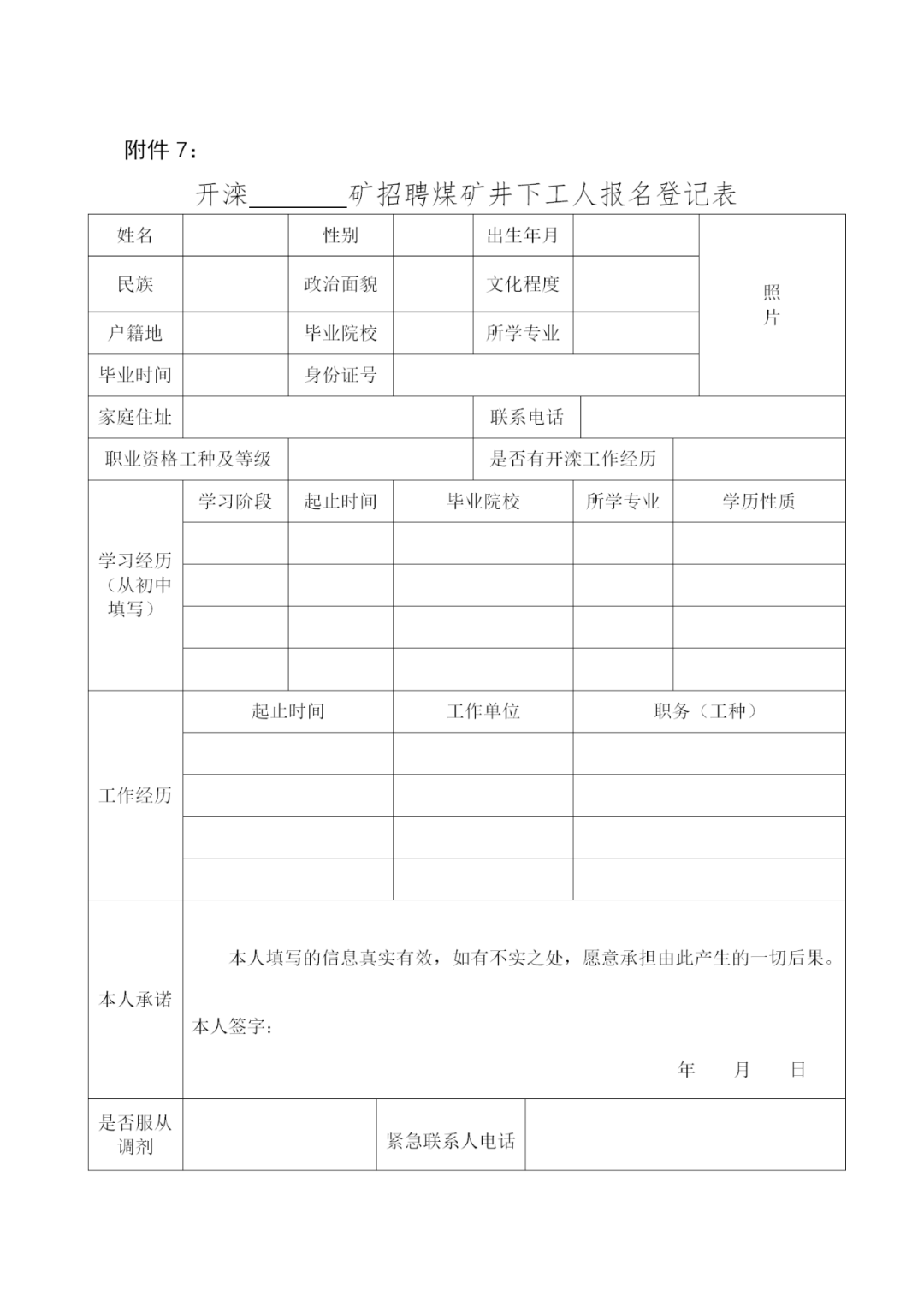 附件2:开滦范各庄矿业分公司招聘煤矿井下工人报名登记表.docx