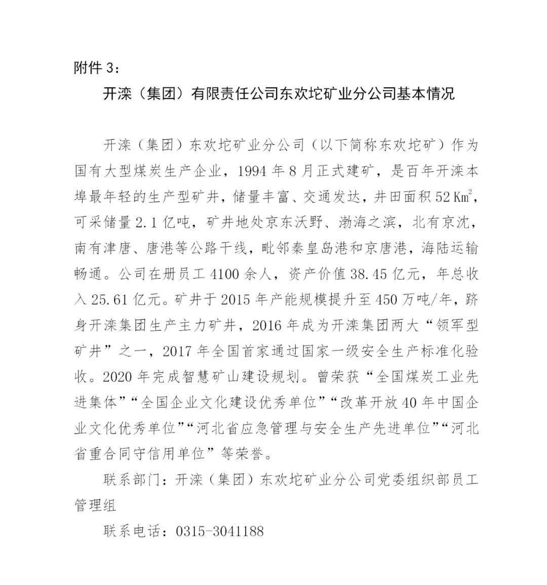 关于开滦集团钱家营矿、唐山矿、东欢坨矿及范各庄矿、吕家坨矿有限公司招聘煤矿井下工人简章