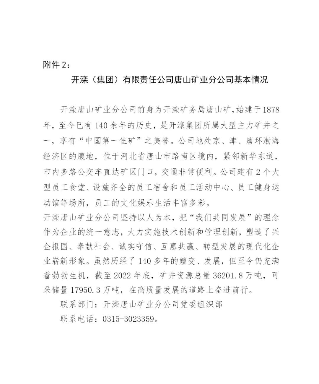 ①唐山矿、东欢坨矿、吕家坨矿需初中及以上文化程度。