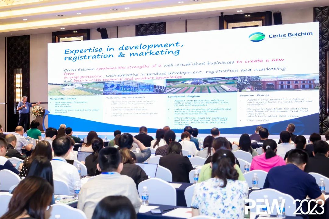 Certis Belchim中国市场主管Jean-Guillaume Delpierre先生,在大会中向参会企业介绍其三井物产营养与农业事业部的战略规划和未来发展的愿景,并且以三井物产的欧洲子公司Certis Belchim为例,通过对其核心产品(线)、合作企业及研发投入等方面介绍,将三井物产打开欧洲门户的方式清晰的展示在参会企业面前。在报告的最后,Jean-Guillaume Delpierre先生明确的表示虽然欧盟核准的活性物质数量逐年在减少,但欧盟的农药市场稳定向上增长,特别是生物制品的增速大幅加快。未来欧洲农药市场必将会面临到许多挑战,其中可持续性环保和气候环境问题的对于欧洲农药市场的影响力最强。