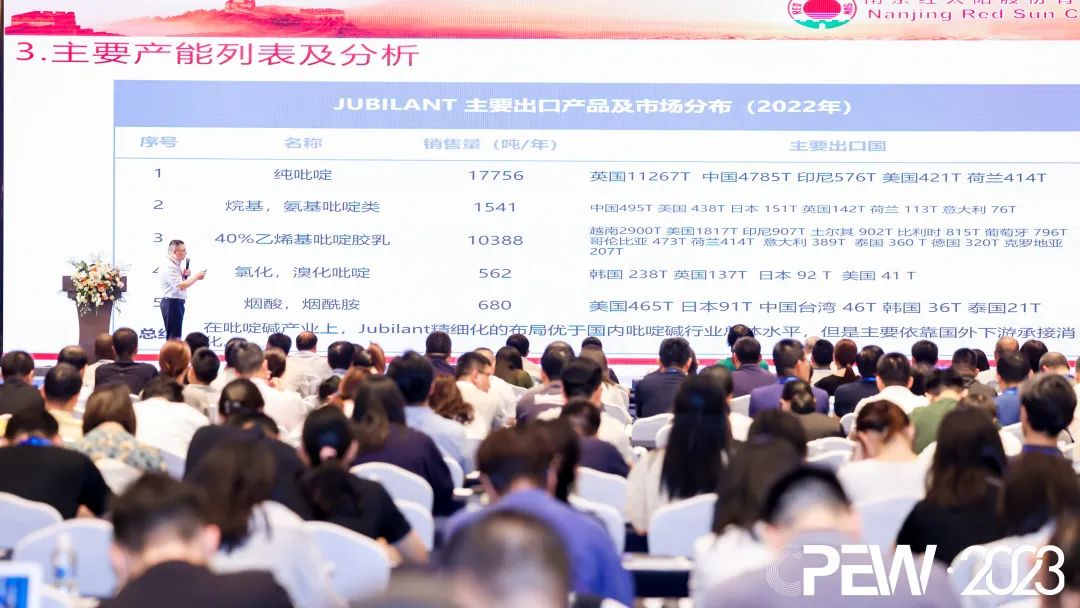 南京红太阳股份有限公司副总经理王国平从红太阳在吡啶碱发展历程、产业链发展现状和发展规划三个方面分享了“中国吡啶碱工业的发展及产业链上下游的协同”的主题报告。他表示,红太阳的吡啶产业链是全世界目前为止是独一无二的存在。目前,红太阳吡啶碱占国内市场45%左右的市场份额,拥有二十多项核心发明专利,产能在全球占比25%左右,曾主导了多个吡啶碱系列的国家/行业标准。红太阳在吡啶系列产品占据原料、核心技术和产业链协同优势。从吡啶到氯代吡啶和氟化,红太阳拥有百草枯、敌草快、氯虫苯甲酰胺、毒死蜱和氟草烟等多个吡啶系列明星产品,产品种类丰富,覆盖全产业链。