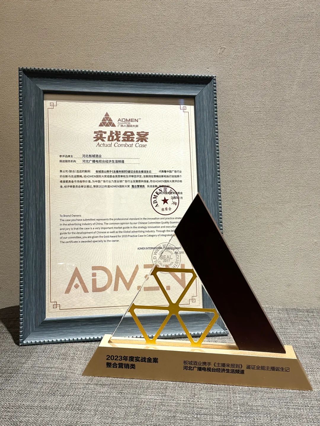 7月18日,以“链接品牌赢家,洞见青春未来”为主题的2023ADMEN国际大奖颁奖盛典在北京广播大厦隆重举行。【板城酒业携手《主播来报到》鉴证全能主播诞生记】脱颖而出,荣获“2023年度ADMEN国际大奖整合营销类实战金案”!