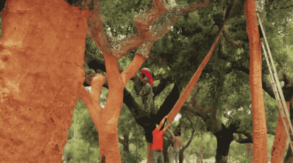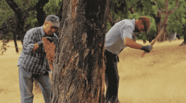 木栓收割是一种高度专业化的职业。至今还没有发明机器剥离栓皮的方法,所以这些工作由技艺高超的工人完成。首先,他们用锋利的小型斧头在树皮上垂直切下,然后将它一点点地撬开。木片越大越好。