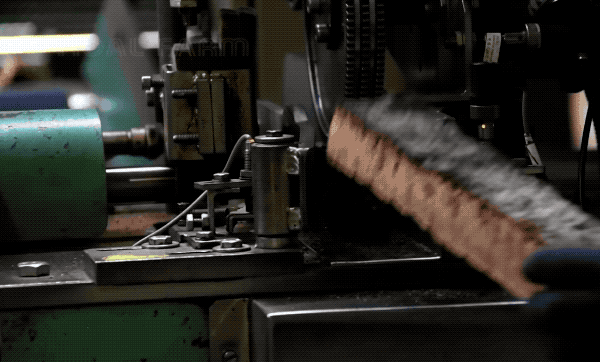 人工操作是从橡木条上打下软木塞,这个角度很清楚的看到,这长了 9 年后扒下来的橡木皮是有多厚了...