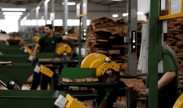 除此之外,也有磨碎成颗粒后加胶水,再大力出奇迹的靠着挤压成型。我们就看个主要操作,这之后的筛选步骤啥的,和天然橡木塞差不多,略过~