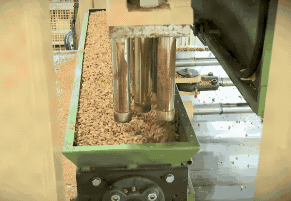 打下来的橡木还要经过一系列的质检,高速摄影机下检测长度、直径、是否完整等,不合格品就被气喷吹走,礼貌的请出这条竞争通道...最好的请过来,不好的请走开~