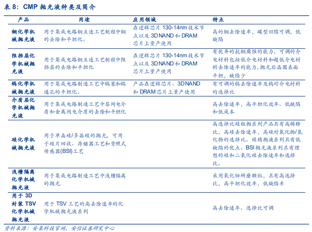 3.4. CMP 抛光液:日美厂商垄断,种类繁多催生差异化竞争机遇