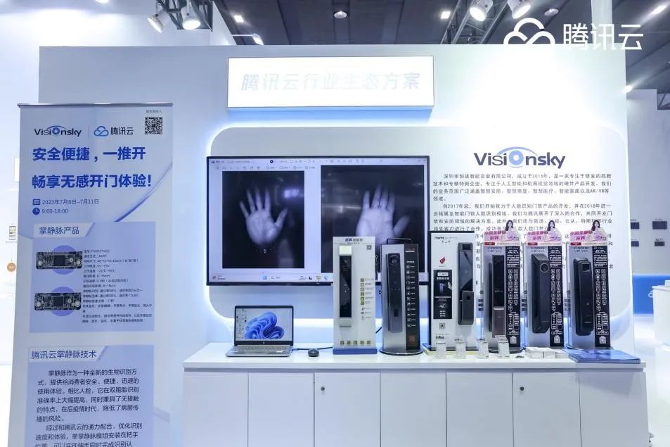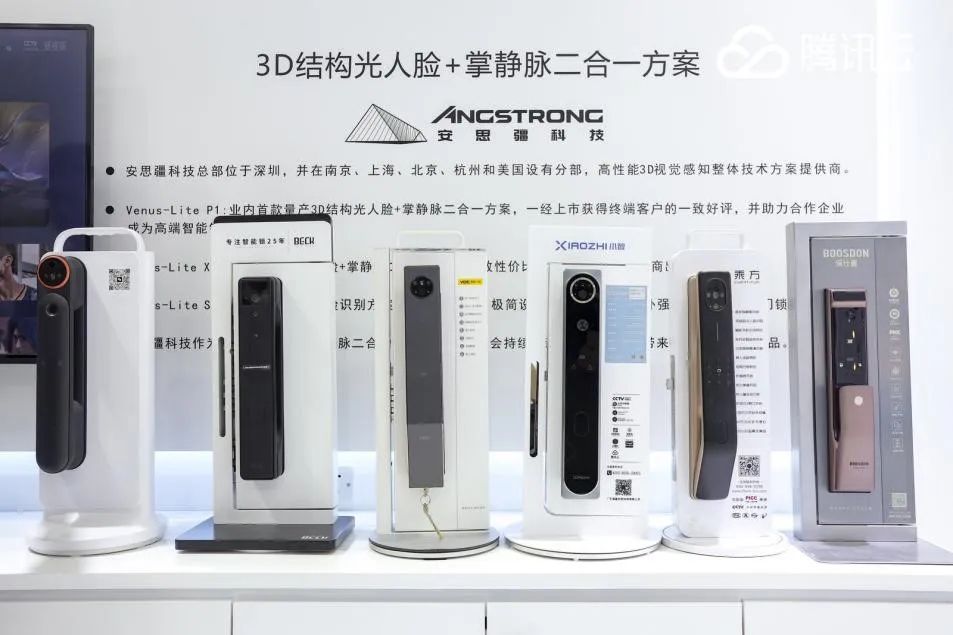 同样地,腾讯云也基于3D结构光生物识别&掌静脉识别二合一技术为深圳市安思疆科技有限公司提供了腾讯云3D结构光和掌静脉门锁算法模组解决方案。在该方案中,3D结构光生物识别&掌静脉识别二合一技术是一大亮点。其中,掌静脉难复制,不易窃取,安全性高,搭配金融支付级刷算法,可轻松识别不同年龄段人群掌静脉信息。安思疆科技产品经理郑周胜也在展会中表示,“腾讯云在算法打磨、商务攻关方面起到了重要作用。”