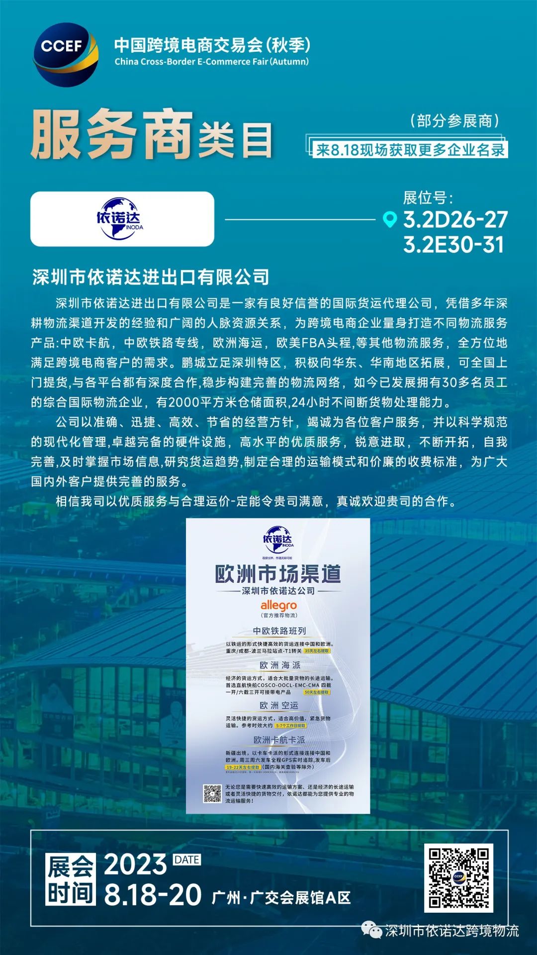深圳依诺达联合波兰allegro,将在展位号:3.2D26-2793.2E30-31与大家见面交流,感兴趣的朋友们可以扫码预约参展