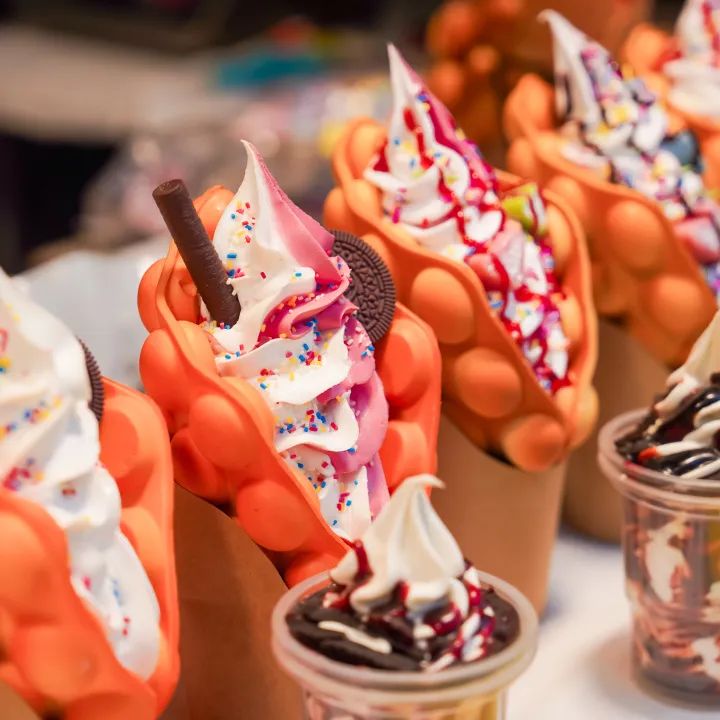 牛奶冰淇淋、甜筒、厚切酸奶、刨冰……各种各样的冰激凌总能吸引到出汗的人们。