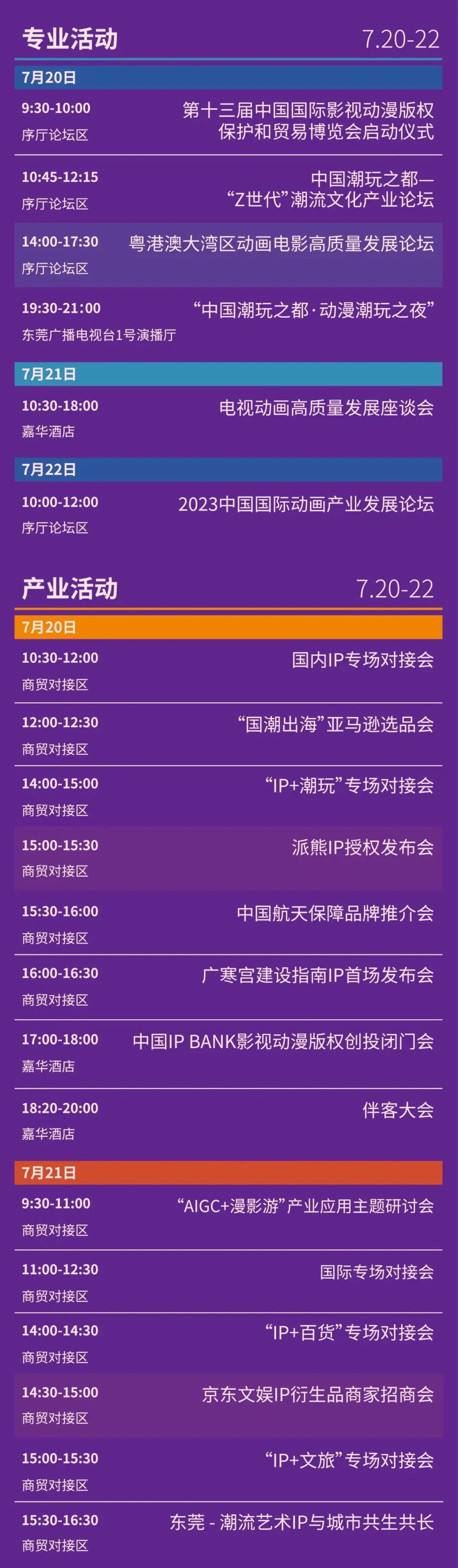 2023东莞漫博会将有包括宝可梦、铁臂阿童木、史努比、安徒生童话、熊本熊、爆笑虫子、小羊肖恩、萌浪兔、水果兔、朵兰兔、米雅的精灵王国、丁丁历险记、天真与功夫袜、超级飞侠、喜羊羊与灰太狼、猪猪侠、百变校巴、阿狸、小林漫画、唐宫夜宴、吾皇猫、飞狗MOCO、罗小黑、量子战士、仙剑奇侠传、大闹天宫、胖哒、派派小分队等1500+国内外知名影视动漫和潮流潮玩IP以及10000+SKU动漫衍生品进行展示。