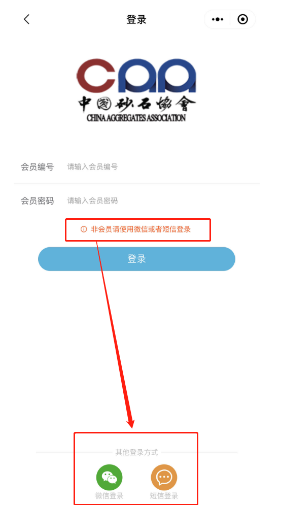 (2)非会员进入小程序后选择微信或短信登录,报名参会。