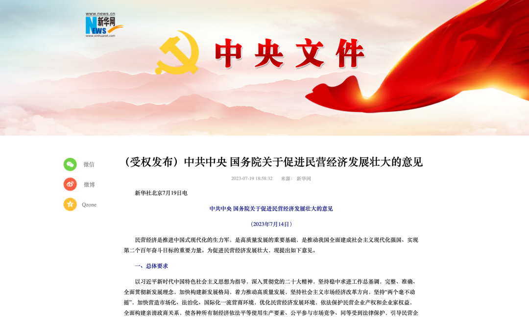 中共中央 国务院关于促进民营经济发展壮大的意见