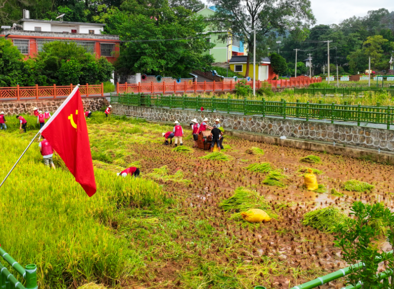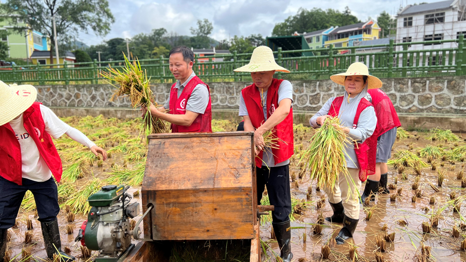 时下正是水稻收割季节,赣县区城投集团公司党员干部和志愿者们抢抓近期晴朗天气,前往挂点帮扶村茅店镇东田村,帮助村民抢收水稻,用实际行动践行全心全意为人民服务的根本宗旨。