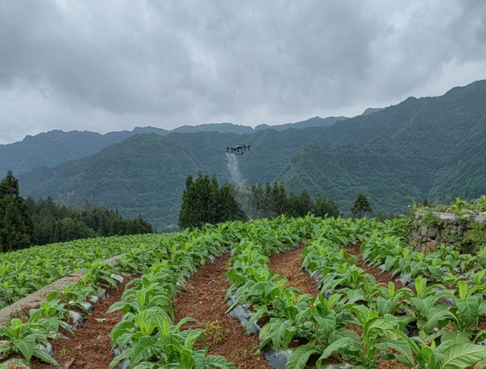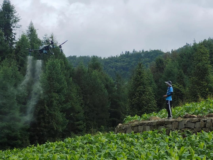 当地烟站按照烟叶生产绿色防控要求,与石柱农资公司达成合作协议。根据当前烟叶长势和病害发生规律,4架无人机同时作业,针对集中连片的烟田喷施波尔多液,防治烟草野火病和各种细菌性病害。