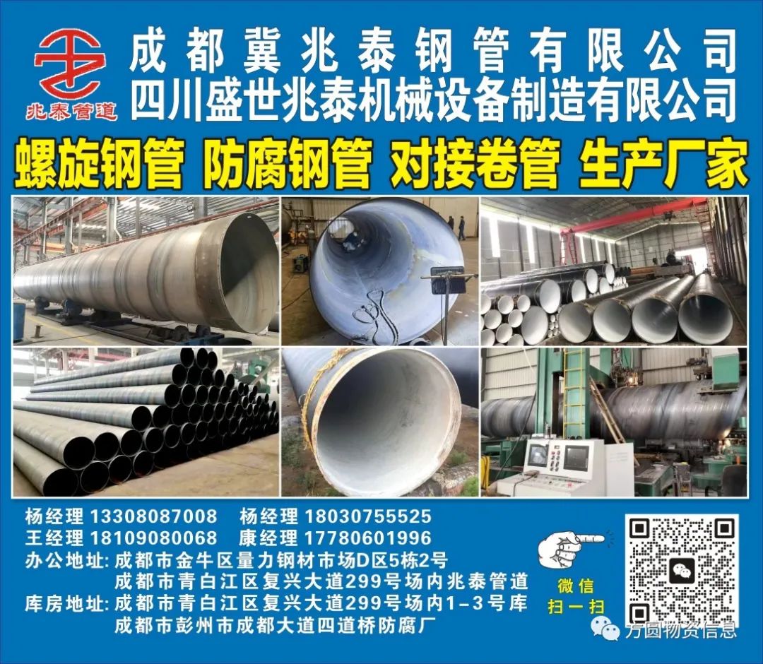 四川盛世兆泰机械设备制造有限公司是一家集管件研制、开发、生产于一体的大型省科技企业管业制造厂。本公司可承担钢质管道(钢管、管件)的单层和双层熔结环氧粉末(FBE)、双层聚乙烯防腐(2PE防腐钢管)和三层聚乙烯防腐(3PE防腐钢管)、双 层聚丙烯(2PP防腐钢管)和三层聚丙烯(3PP防腐钢管)、环氧煤沥青钢管防腐、环氧树脂防腐钢管、IPN8710高分子防腐涂料防腐(IPN8710 饮用水管道)、水泥砂浆衬里防腐、聚氨酯预制直埋保温管、黑黄夹克保温管、钢套钢保温钢管、预制直埋管件保温防腐等工程。公司始终秉承以质量求生存、以信誉求发展的经营理念,对产品实行厂家直销价格,常年备有万余吨现货库存,让利给广大用户,节假日不休,对产品实行三包服务,欢迎新老客户光临惠顾!对接卷管 生产厂家