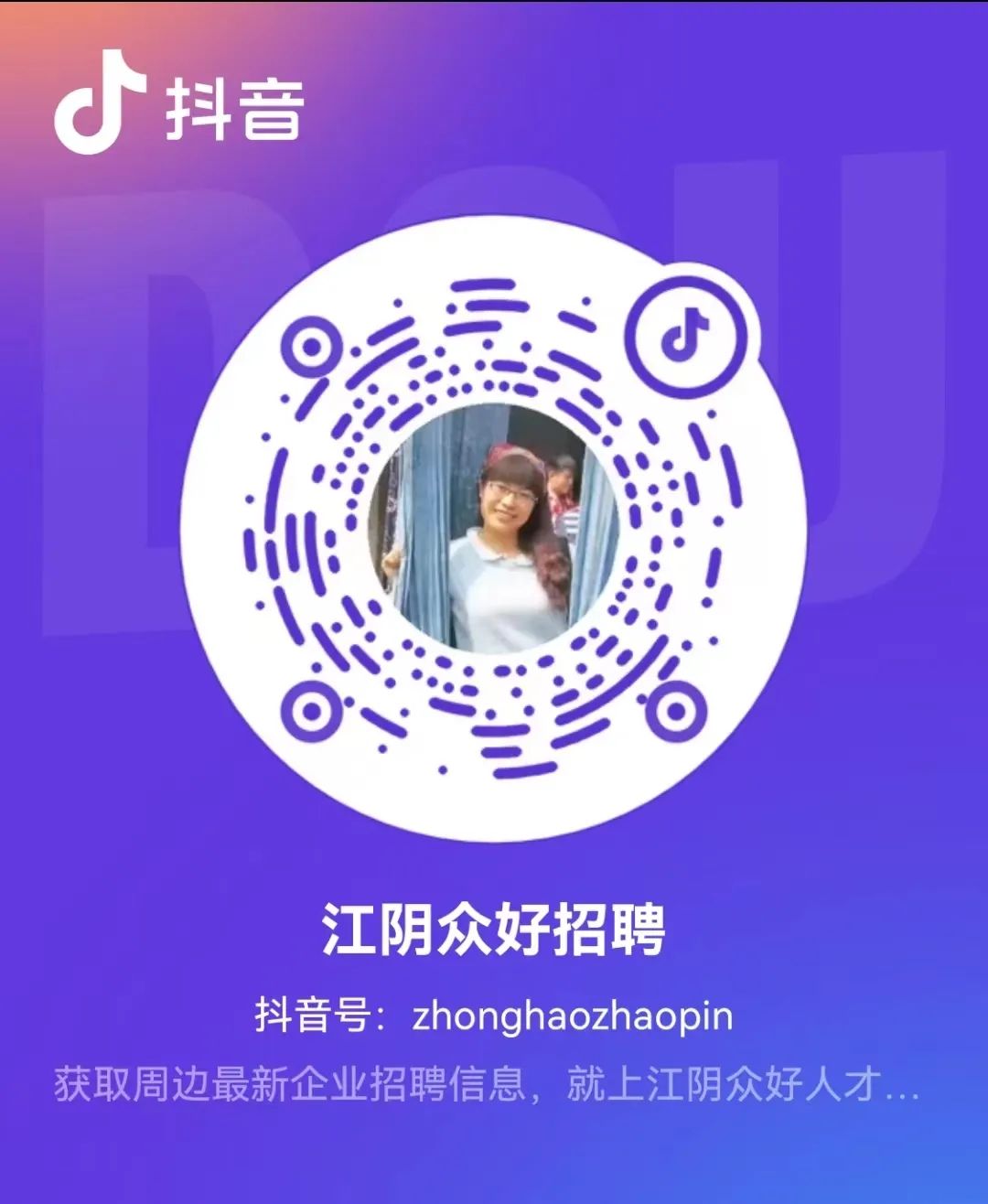每天接收最新招聘信息,请关注江阴众好人才招聘公众号,按住不放,关注即可↓↓↓
