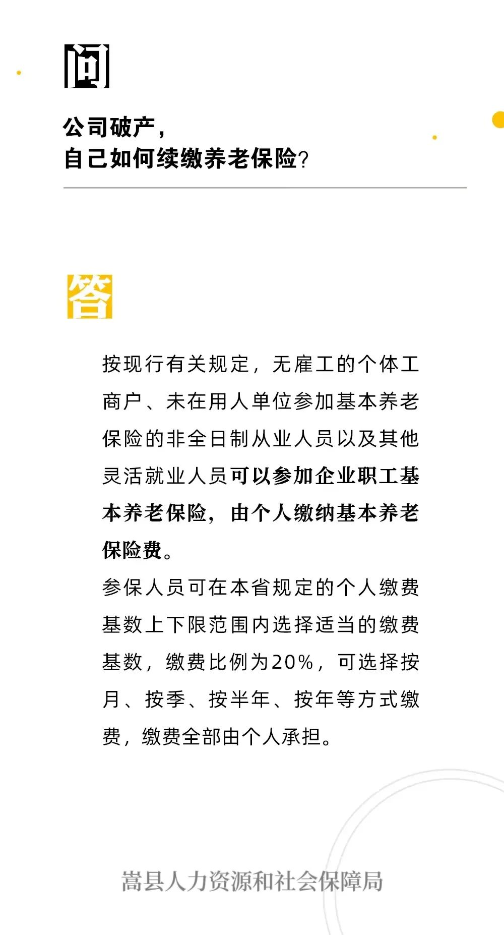 【人社日课·7月20日】公司破产,自己如何续缴养老保险?