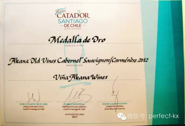 在第13届智利年度葡萄酒颁奖典礼上,完美公司亚卡纳老藤红葡萄酒荣获金奖!又一个葡萄酒重量级大奖!1月18日,智利葡萄酒联盟亚太区总裁Julio Alonso Ducci向完美公司颁发了获奖证书。