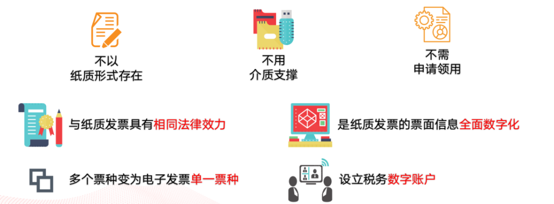 票面信息全面数字化,将多个票种集成归并为电子发票单一票种,全电发票实行全国统一赋码、自动流转交付。