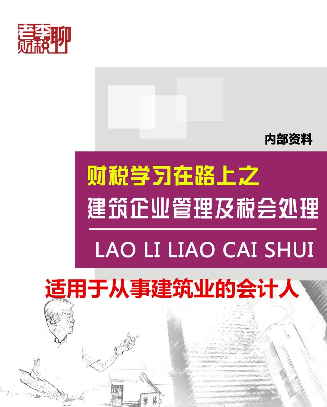 老李聊财税团队针对财务人面临的问题,自2017年整理修订本资料,经过4年的经验总结,新增了EPC总承包相关知识点,最终形成了最新版本的《财税学习在路上之建筑企业管理及税会处理。该材料从建筑业的行业特点、财税政策、日常会计处理、涉税处理、行业风险、涉税风险、纳税筹划等方面进行了展示,政策规定、条文解读、实际业务举行贯穿其中,这样更有利企业经营者及财务们日常工作中理解和操作。材料具体详见:【书籍】老李和他的建筑业企业管理及税会处理的相熟情缘