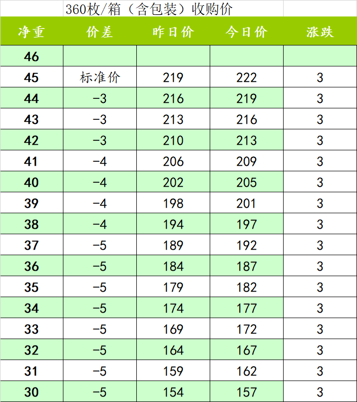 按照往年经验,蛋价这个时候应该进入了高峰期,但是今年只到今天为止,仍然只能算是刚刚走出低谷,之前甚至还不断反复,主要还是之前梅雨天气在抑制看涨情绪。左右蛋价的四大因素:天气,情绪,经验,供需,毫不客气的说,市场供需是排在最后面的。以湖南三尖长久以来供不应求的供需情况,仍然不得不在梅雨季主流市场一日三惊的情况下,以低运行以迎合市场。现在河北,山东,湖北相继出梅,整个蛋品的市场的情绪为之一变,从天气到情绪,从经验到供需,都在提醒市场,该涨价了。虽然今年天气异常,各地仍存在高温高湿的不利影响,但是相较于梅雨季对行情的影响,与长久被抑制的涨价情绪相比,已经显得微不足道了。今日湖南三尖跟随整体市场情况,继续向上调整3元,后续根据整体市场行情和自身走货情况,再行调整。