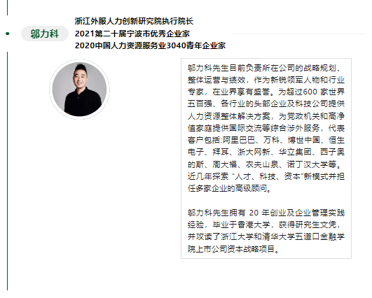 浙江外服携手怡安,将于7月28日在宁波市鄞州区举行“企业掌舵人‘刷新’系列走进宁波活动”。鄞州区2022年GDP超过2734.8亿元,首次成为新的“浙江第一区”。鄞州能够以制造业和服务业双轮驱动,在高质量发展中实现“弯道超车”,求贤若渴、近悦远来的人才环境功不可没。目前,鄞州人才资源总量已达43.25万人,拥有900人左右的外国专家人才,建立博士后工作站57家,排名全省居前。