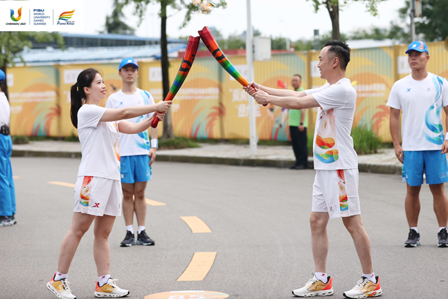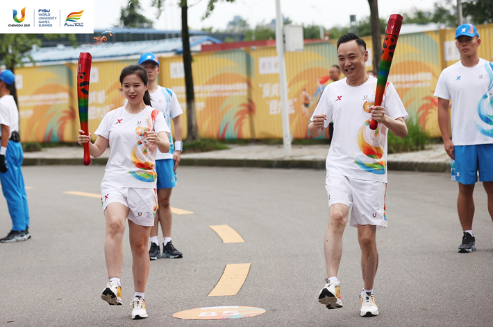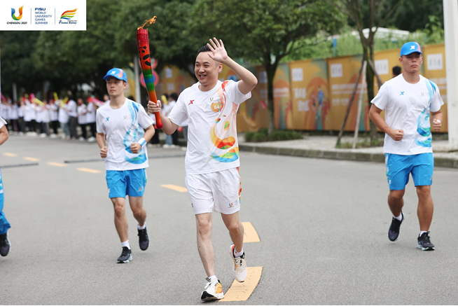 7月14日,夏日炎炎,在中医学院内,成都第31届世界大学生夏季运动会火炬传递成都站活动开始了第三日的传递。来自宏盟汽车集团的优秀民营企业家,也是本届大运会二手车行业唯一代表——胡伟,高举“蓉火”,以昂扬的姿态、坚定的步伐,与来自各行各业的火炬手携手,圆满完成大运会火炬传递。