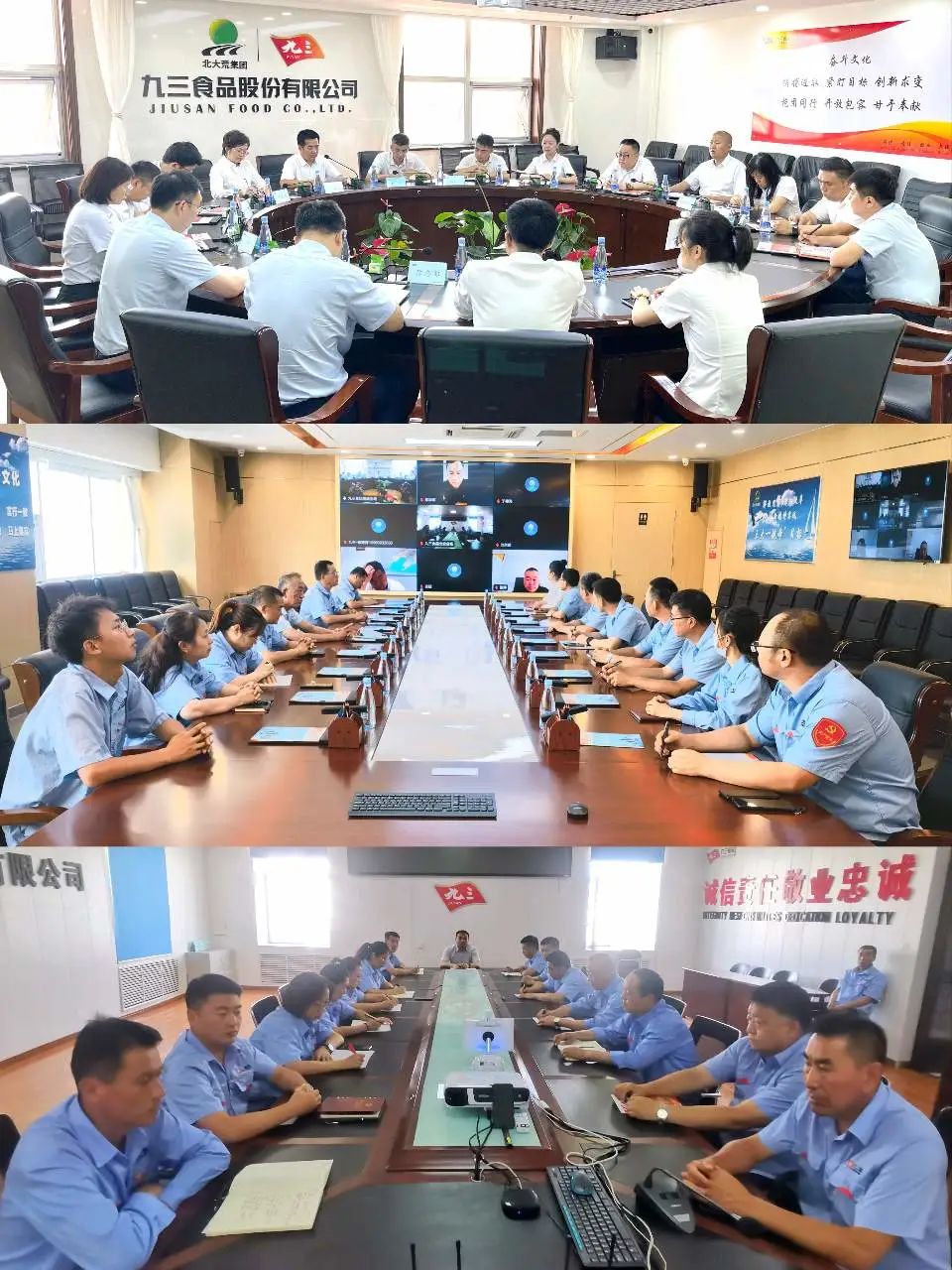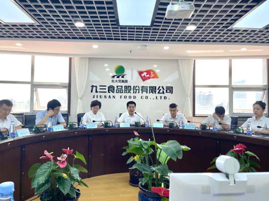 7月19日,九三食品股份有限公司召开学习贯彻落实集团2023年中期经济分析会会议精神专题会议。公司代理总经理王立庆,副总经理朱江,总分公司各部门负责人、营销事业部各部门总监及以上管理人员现场参会,惠康工厂及北安公司中层管理人员在分会场通过视频系统参会。