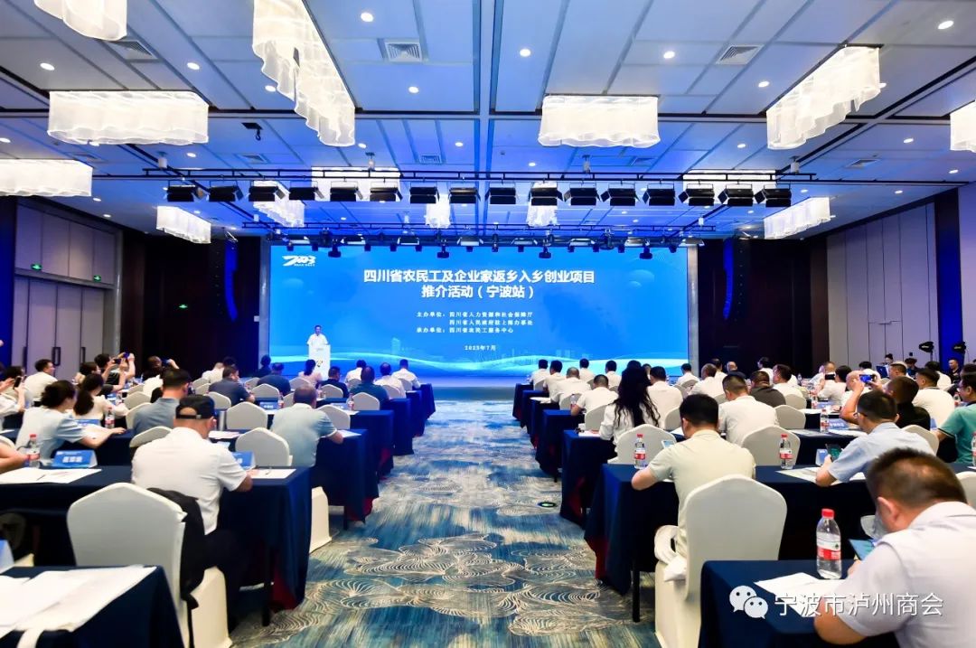 2023年7月19日上午,时值烈日炎炎、热浪滚滚的夏日伏天,四川省农民工及企业家返乡入乡创业项目推介活动在这美丽的海滨城市宁波举行。此次活动由四川省人力资源和社会保障厅、四川省人民政府驻上海办事处主办,四川省农民工服务中心承办。四川省人力资源社会保障厅党组成员、副厅长黄晓东,四川省人民政府驻上海办事处主要负责人、一级巡视员徐群等领导出席活动并致辞。宁波市泸州商会10余家会员企业参加本次活动。