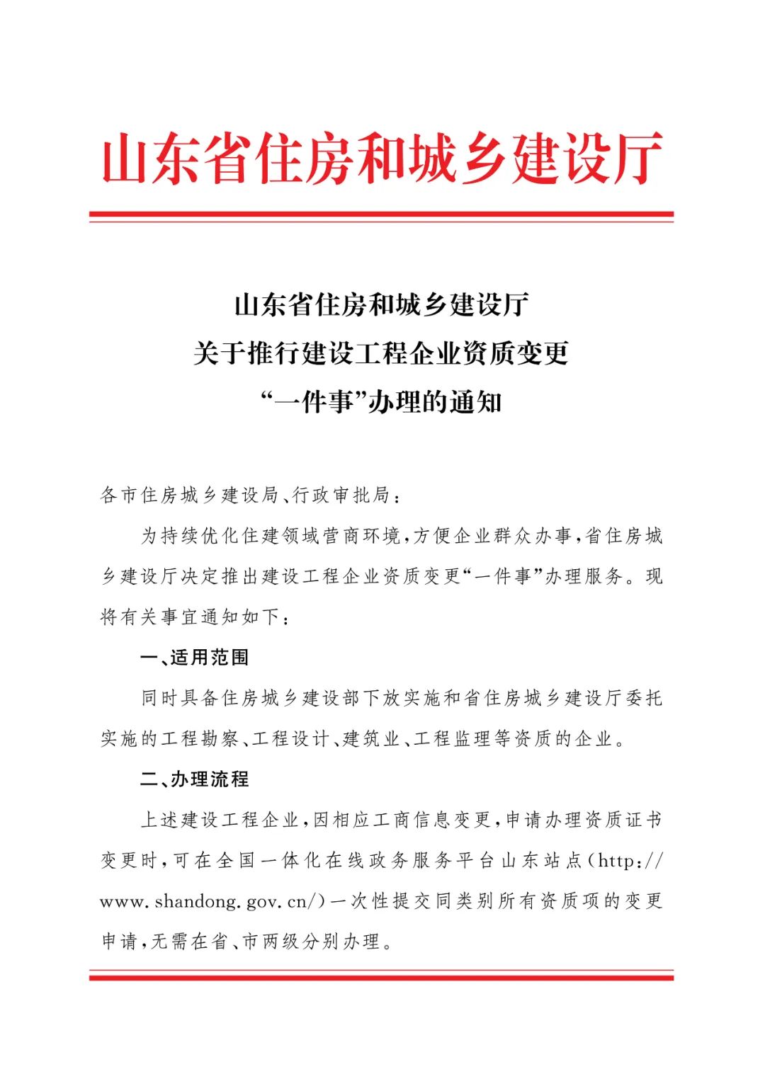 为持续优化住建领域营商环境,方便企业群众办事,省住房城乡建设厅决定推出建设工程企业资质变更“一件事”办理服务。现将有关事宜通知如下: