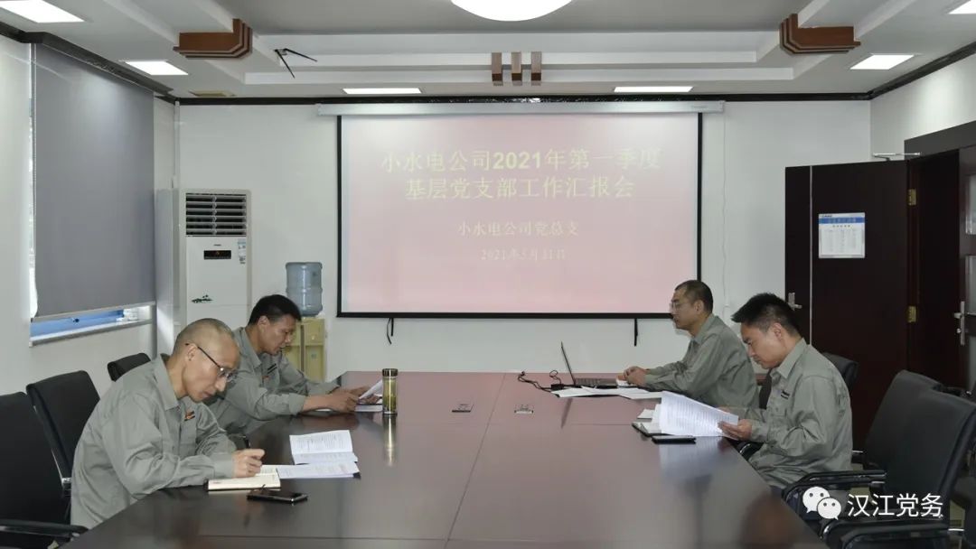 5月31日上午,小水电公司在集团公司办公楼四楼会议室召开2021年第一季度基层党支部工作汇报会。公司党总支书记、副经理朱耀、各党支部书记参加会议。