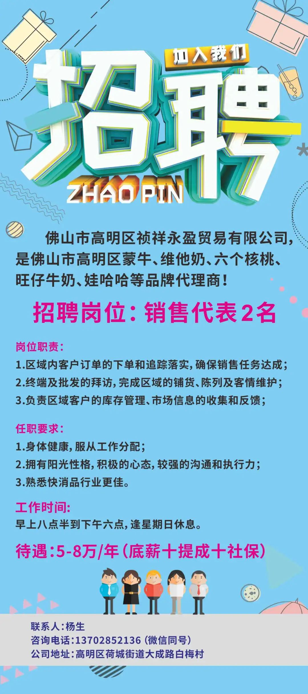 2.业务员1名:公司有合作平台,可提供业务跟进,从事过电话销售,热爱销售工作,年轻有活力,有冲劲,从事过家装行业。底薪3000+提成。