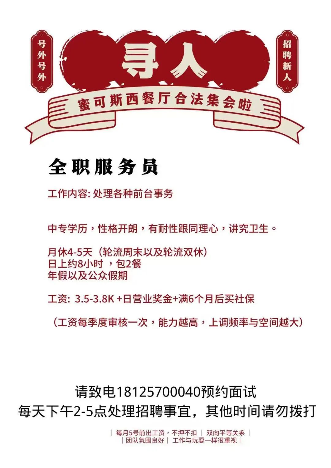 工作时间:早上八点半至下午六点.逄星期日休息!