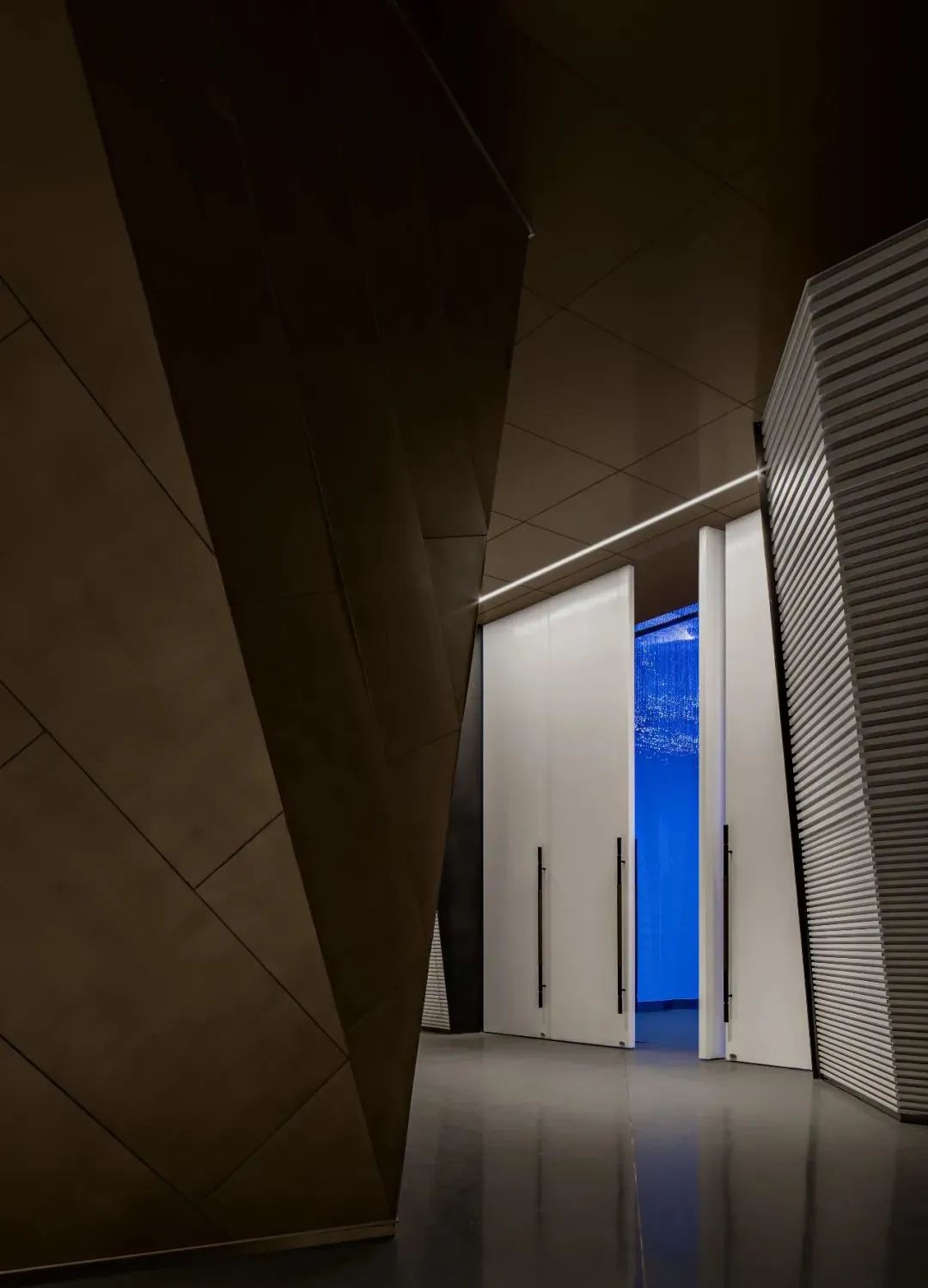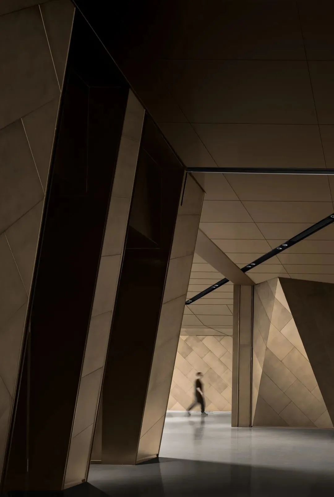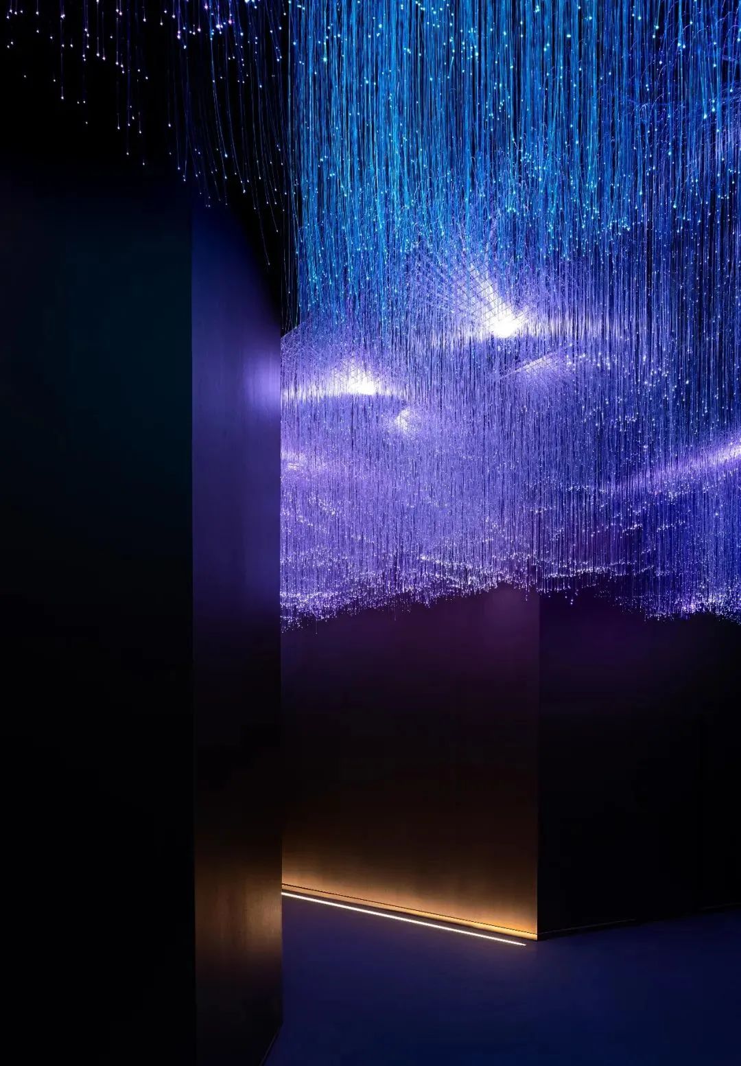 城市、山脉、星空、麦田以抽象形式和空间相遇,设计的“幻术”赋予此时此地,体验感超越了叙述和象征意义——体块劈砍、星图照路,电子海水变幻着色彩在天幕尽头起伏翻涌......自然、城市和人的历史裹挟而来,越过罗森桥在此相交。