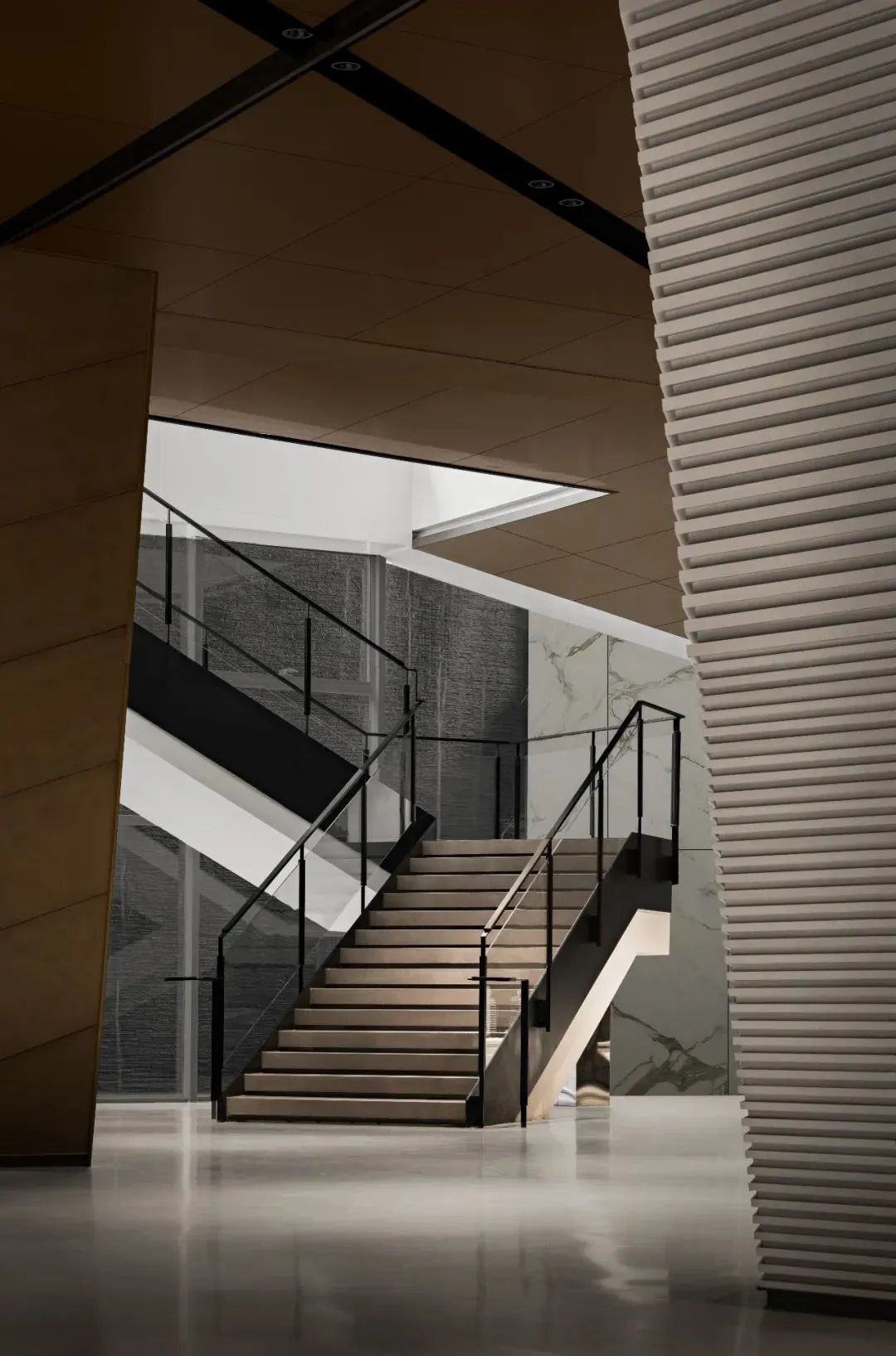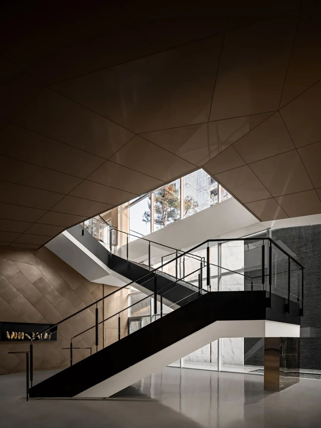 设计策略一方面与业主源自道家的企业文化相符;另一方面探索空间与城市人文属性和历史感的关系,使高速发展的城市和企业无论怎样走上未来之路,都有所追忆、有所寄托。