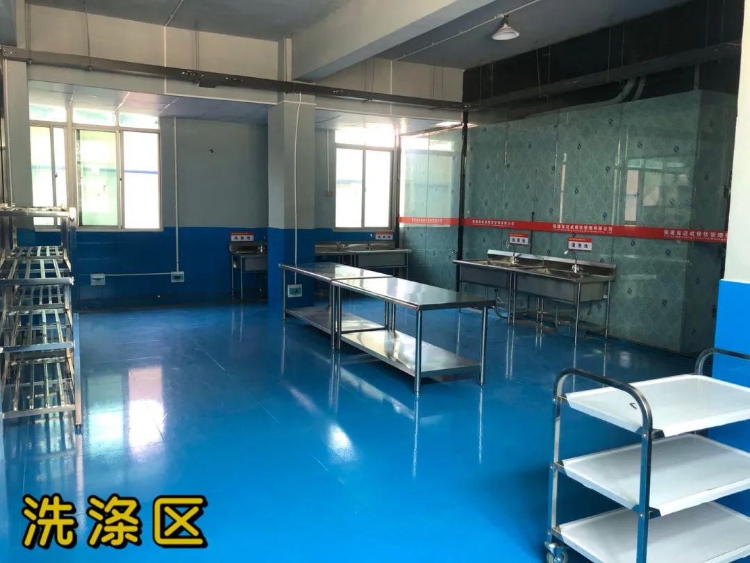 公司设有食品检测中心,中央厨房,消洗中心,储物中心,大型洗碗机、保鲜库和冷冻库。公司采购市场监督管理局指定的最高规格的餐具、器皿,确保学生食用安全。坚持餐具集中消洗、餐餐消毒、每天进行卫生检查、检测,确保无病菌残留。