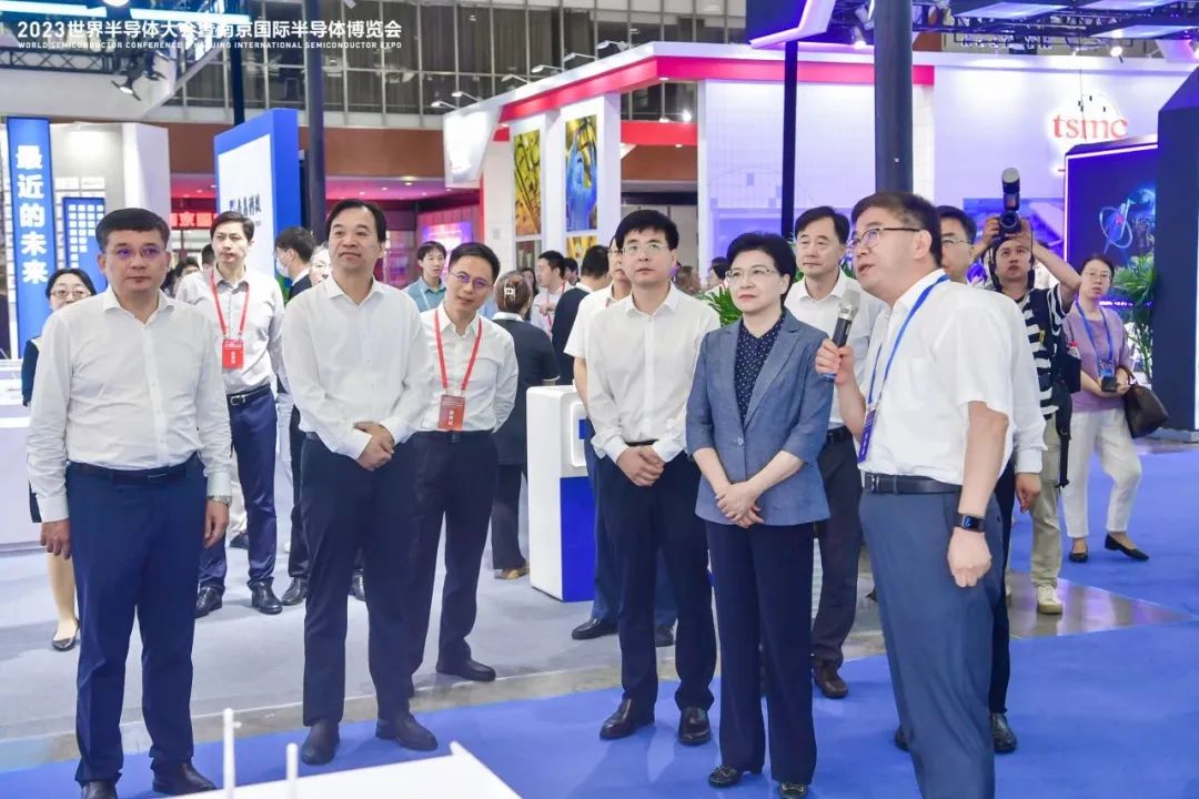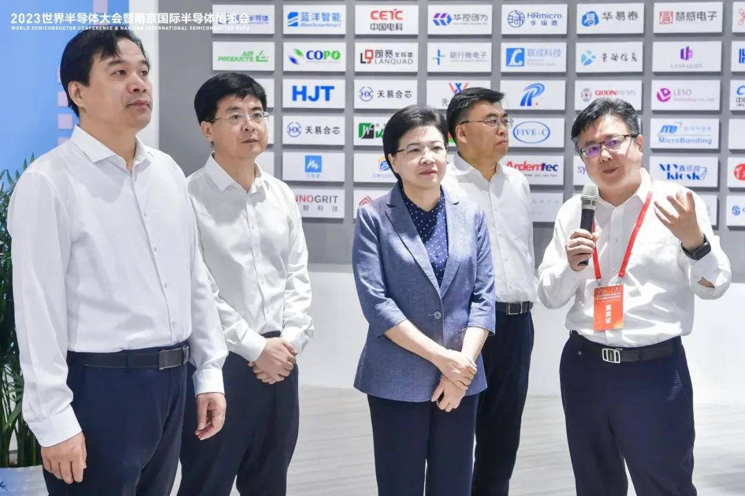 江苏省委常委、南京市委书记韩立明,江苏省人民政府副秘书长巩海滨,江苏省工信厅厅长朱爱勋,南京市委常委、南京江北新区党工委书记杨学鹏一行领导巡视展馆。