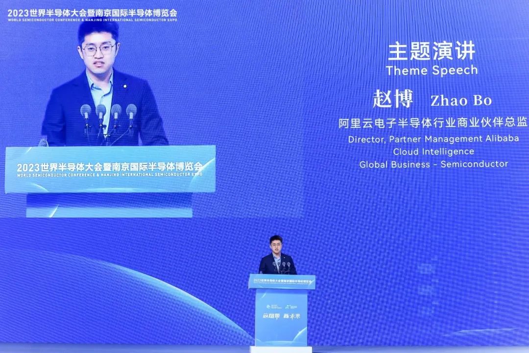 阿里云电子半导体行业商业伙伴总监赵博为企业家峰会做了《云上研发芯速度、数据驱动芯智造》主题演讲。赵博指出,算力与数据已成为半导体行业大战的重要保障,并据此介绍了阿里云解决IC算力“焦虑”的三种模式、芯片设计上云整体方案、电子半导体电商整体方案等,力求与电子半导体伙伴共同推动产业合作。