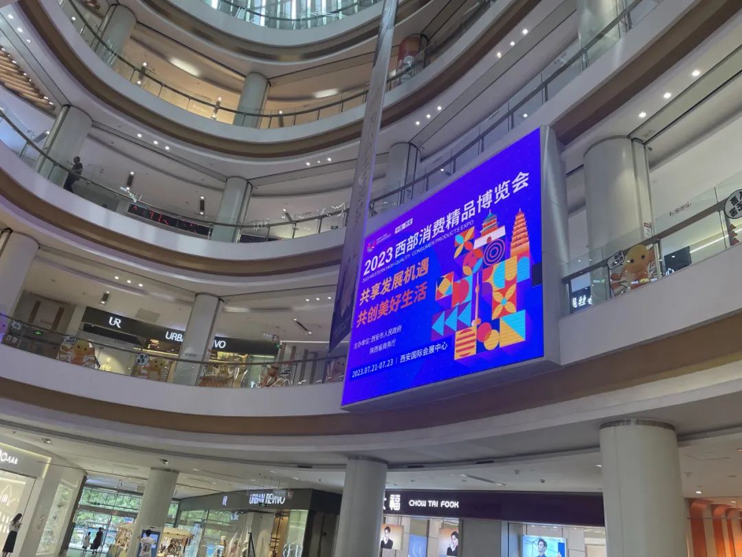 本届西部消博会在老城根、四海唐人街、龙首印象城、华阳城、长安万科广场、华润万家(新都市店)、长百精致荟、爱家超市(周至店)、银泰百货,西影TIME等大型商超开启霸屏模式。