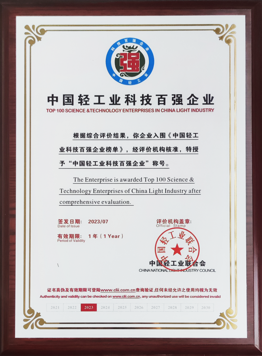 7月20日,以“迈向世界一流企业 服务人民美好生活”为主题的中国轻工业百强企业高峰论坛在北京隆重举行。会上,中国轻工业联合会发布2022年度中国轻工业百强企业、中国轻工业科技百强企业等名单。
