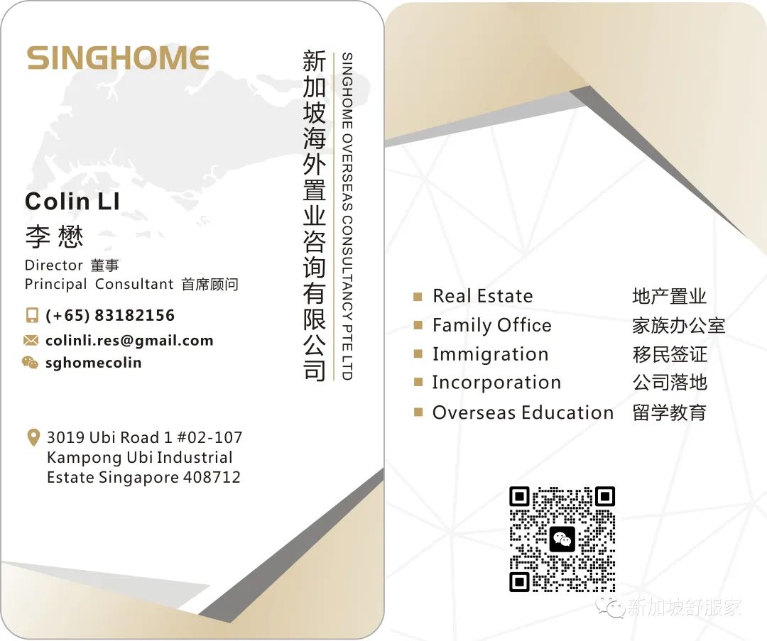 微信号 SGHOMECOLIN 添加作者微信咨询,可加入《新加坡舒服家房产移民群》